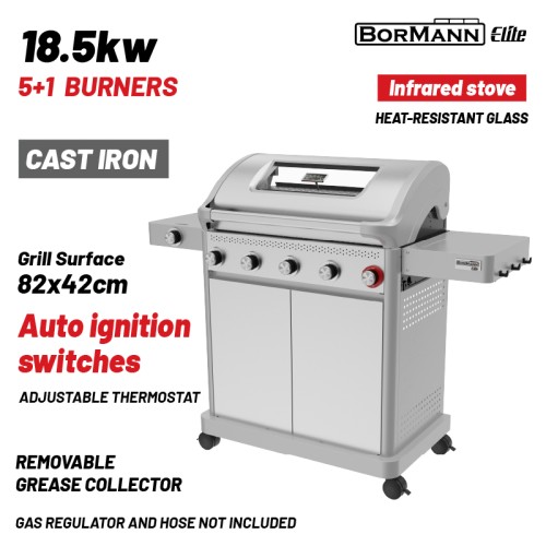 BORMANN Elite BBQ7051 Ψησταριά Υγραερίου LEGENd 5+1 Εστιών με Μαντεμένια Σχάρα LUXURY TYPE